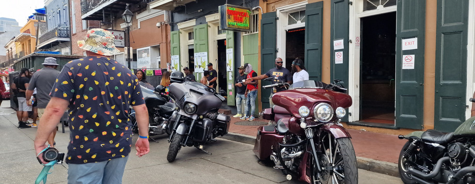 Die Gehwege sind holprig, brüchig und es fehlt schon mal ein Kanaldeckel! Trotzdem kommen wir heil an der Bourbonstreet an, zunächst eine normale Straße, die aber mehr und mehr Kneipen, MusikerInnen (aber es sind wirklich sehr wenige Frauen) und Menschen aller Herkunft aufweist. Die Stadt ist voll von Musik. Dort ein Gitarrist mit sixpack auf einem Autodach, später eine Dixieband auf der Straße und in der Ferne eine ziemlich verstimmte, unüberhörbar Wasserpfeifenorgel auf einem Schaufelraddampfer im Mississippi. Wir geben uns dem Treiben hin, landen in einer Kneipe mit Gitarrenrock und werden Zeugen, wie einem Gast (offensichtlich kennt man sich) eine Mundharmonika verpasst wird, der andere nimmt seine Quetschen und die beiden jammen drauf los, dass es eine Freude ist. Wir sind gefangen, glauben dem so gar nicht esoterisch aussehendem Typen, dass er die Zukunft aus Tarotkarten lesen kann und würden der fast völlig nackten und stark angeheiterten Drag auf der Straße beinahe ein paar Dollar in den String stecken, wenn er nur ein bisschen lächeln würde. Später treffen wir in einer einschlägigen Bar noch ein paar Schwestern der #PerpetuellenIndulgenz und wir tauschen Münchner Grüße und Nummern!