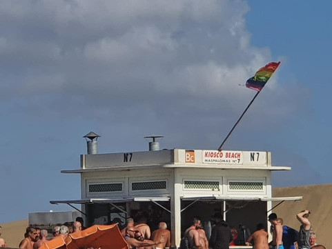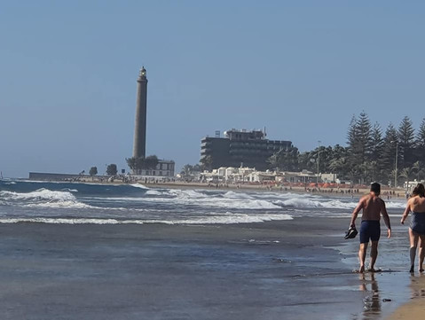 Das Brausen der Wellen animiert uns ins Wasser zu gehen - erst kalt empfinden wir die klatschenden Wogen mit der Zeit immer angenehmer! Salz auf den Lippen - viel nackte Haut um uns herum (nicht immer schön, aber fast alles interessant)